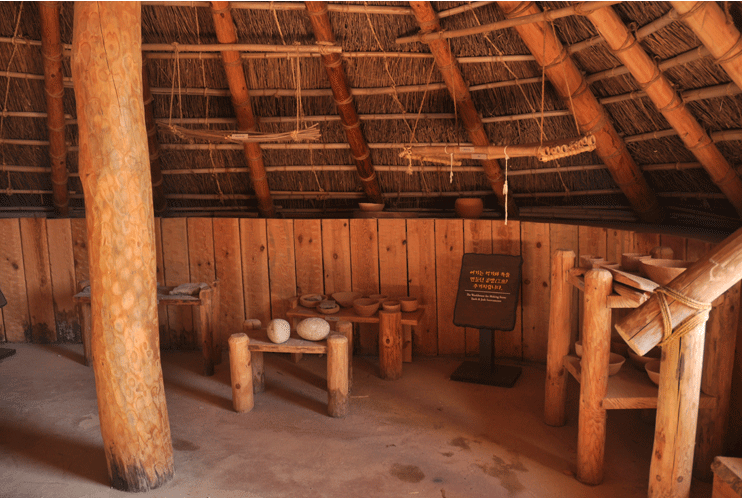 支石墓时代的人们也如此,在背山靠水的地方,挖土建地穴住居而生活.大概十个户左右形成一个小村落,一起生活.在村子的周围为了防御和表示界限,挖水沟或立木栅栏.