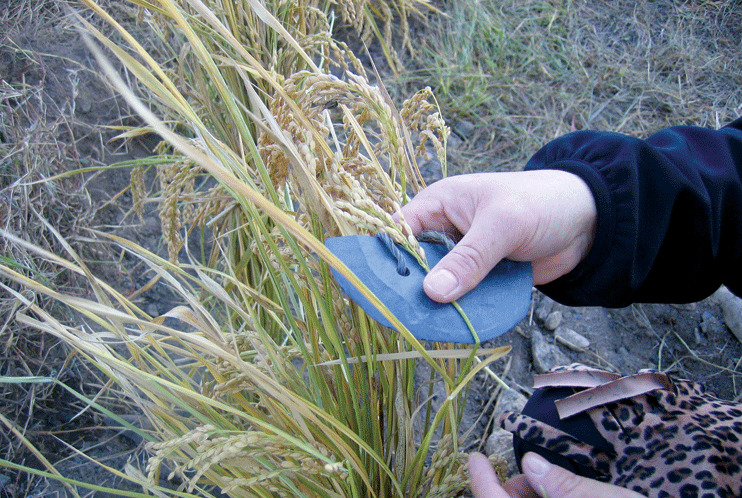 和米一起成为种稻子的直接证据的青铜器时代的水田,最近蔚山无去洞玉岘遗址、论山麻田里遗址开始被调查.蔚山无去洞玉岘遗址的水田大小为1-3坪,呈方形或不定形的形态.论山麻田里的水田,利用原有的自然地形,小区划为3m左右的长方形或方形,挖人工水路,具备了水田供水的灌溉设施.随之采伐用石斧的增加,有沟石斧(锛子)、石凿、石刨刀等为制造农耕道具的工具的普遍化等,可以说是告知农耕已普遍成为生产经济基础的资料.