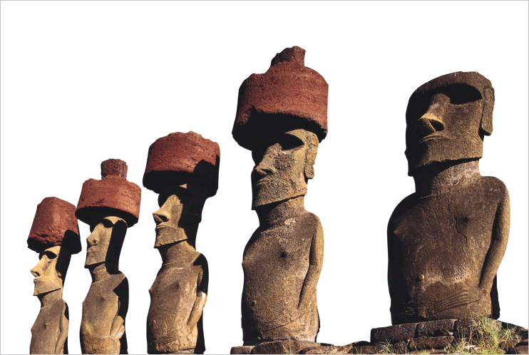 A stone statue is erected by inscribing a human face on the stone. It refers to Buksu (Jangseung ; Korean traditional totem pole) or stone haroobang and gate and stone figure erected in front of the tomb. This stone statue was discovered in many countries, but the stone statue in Easter Island of the South Pacific is representative. About 200 stone statues of human faces are erected facing towards the sea along the coast 3,200km away from South America. The stone statue of 10 m in height and 86 tons in weight is called 'the mystery of Easter Island'.