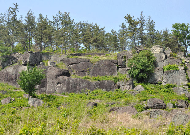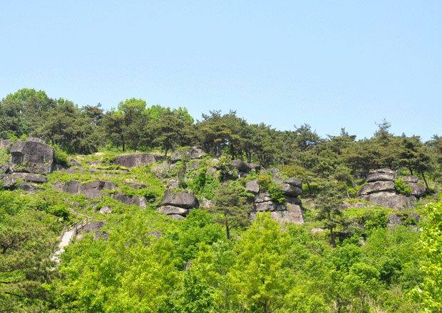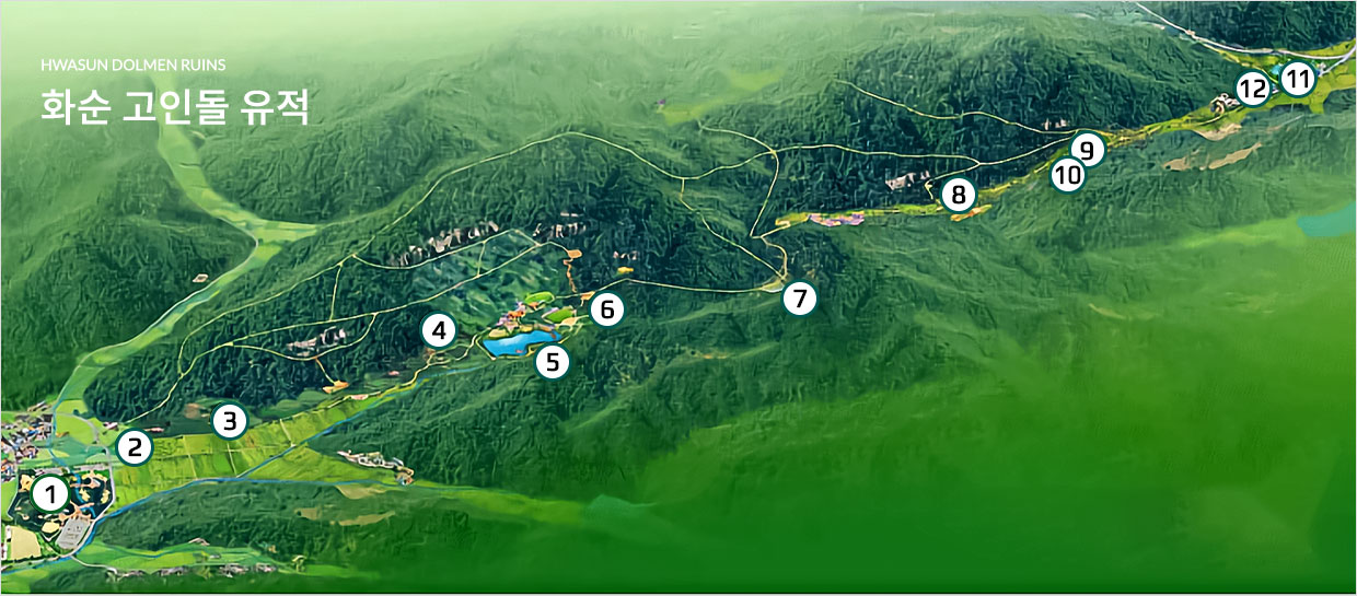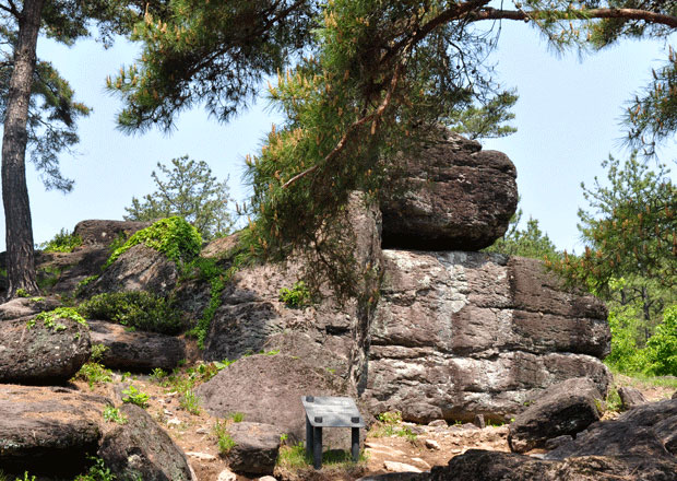 괴바위 고인돌지구는 고양이 형국인 괴바위 고인돌을 중심으로 47기의 고인돌이 밀집 분포되어 있는 곳이다. 괴바위로 불리는 이 고인돌은 원래 5개의 고임돌이 받치고 있는 전형적인 바둑판식고인돌이며 지형적으로 고양이 자리에 위치하고 있어서 붙여진 이름이다. 해발 65m에 위치하고 있어 멀리서도 한눈에 바라다 보이며 평지를 내려다보이는 곳에 자리하고 있으며 길이 530cm, 폭 360cm, 두께 300cm인 초대형 덮개돌이다.