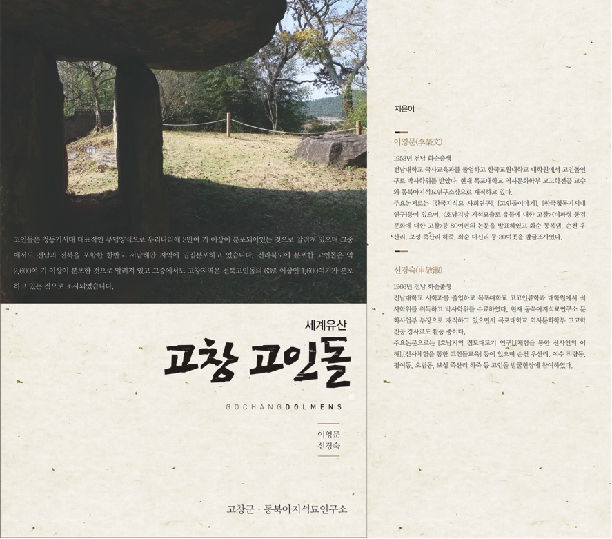이 책은 고창고인돌유적 탐방 코스별 안내와 문화수수께끼로 고인돌 궁금증을 해결하는 일반인을 위한 고인돌 안내서이다. 내용은 세계유산으로서의 고창고인돌유적의 가치와 의미를 탐방코스별 안내로 설명과 함께 사진을 곁들여 구성하였으며, 제2부로는 고인돌에 대한 궁금증을 문화수수께끼로 풀어보고 고인돌유적을 만들었던 고인돌 사람들의 삶에 대한 내용도 주제별로 살펴보았다. 이 책을 통하여 일반사람들이 거석문화의 보고라 할수 있는 고창고인돌유적을 편안하고 가벼운 마음으로 접근할 수 있는 길잡이 역할을 기대하고 있다. |